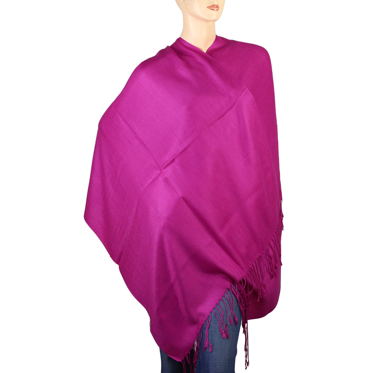 Women's Soft Solid Color Pashmina Shawl Wrap Scarf - Fuchsia