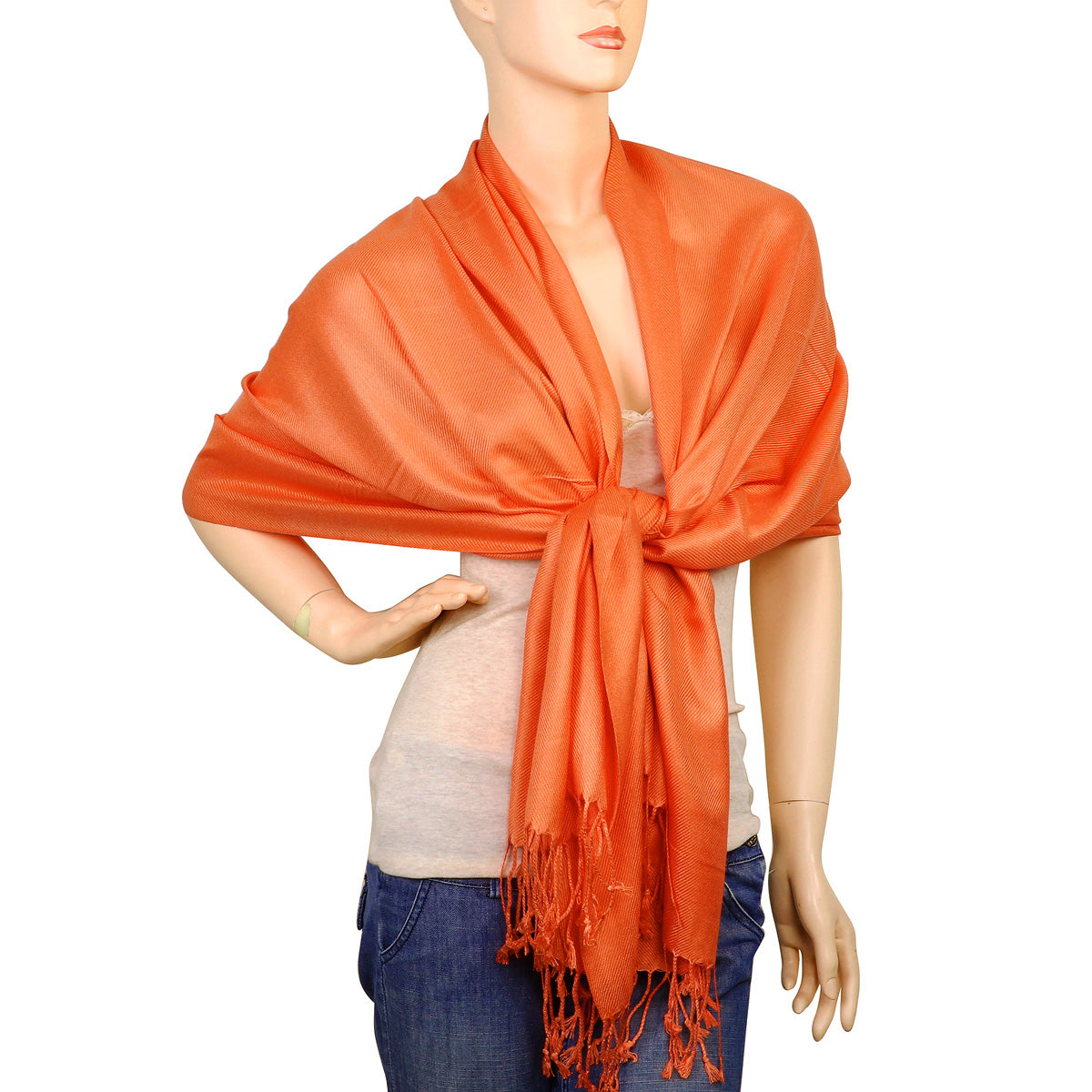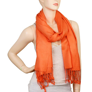 Women's Soft Solid Color Pashmina Shawl Wrap Scarf - Orange